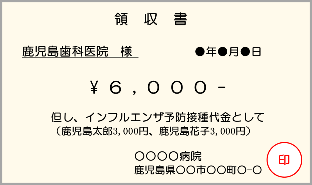 - 宛名が予防接種を受けた者であること、もしくは宛名が歯科医院名であっても、但し書きに予防接種を受けた者の氏名が明記されていること。